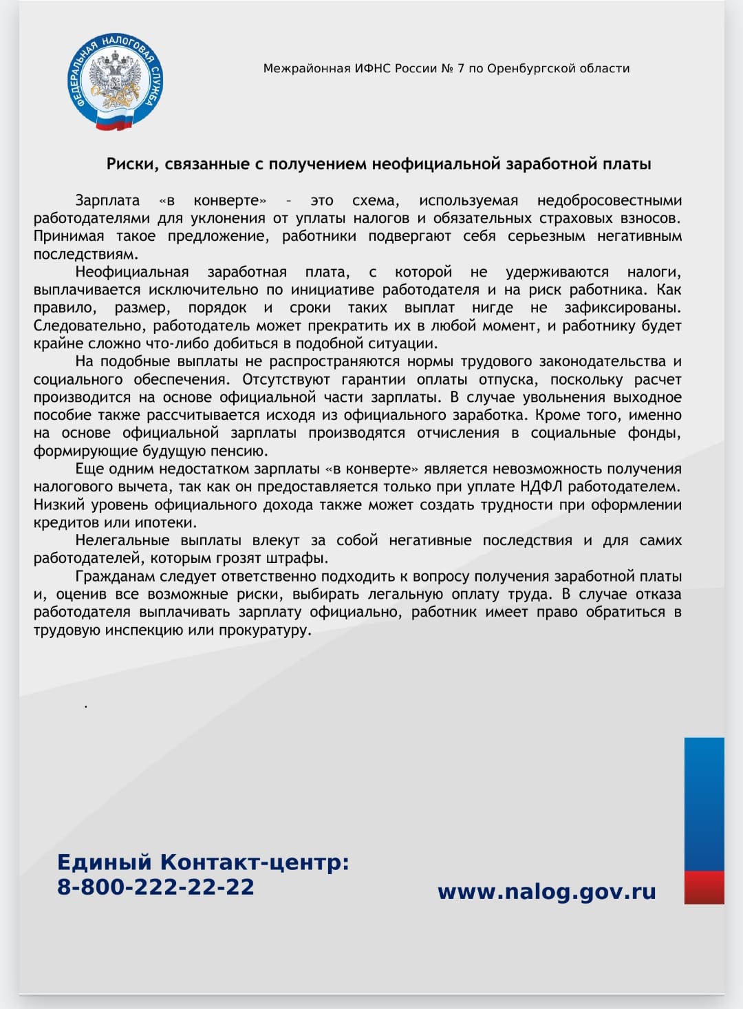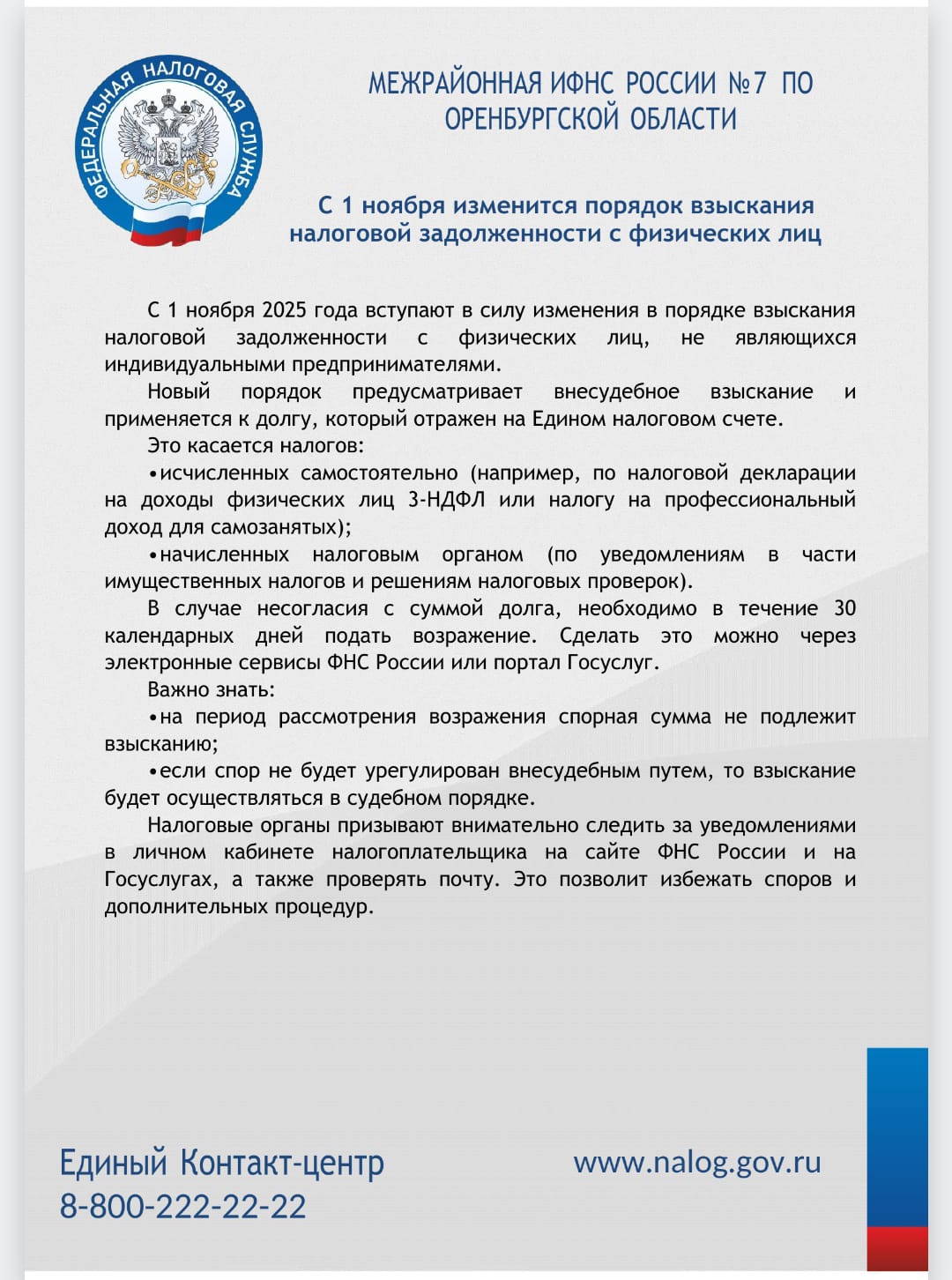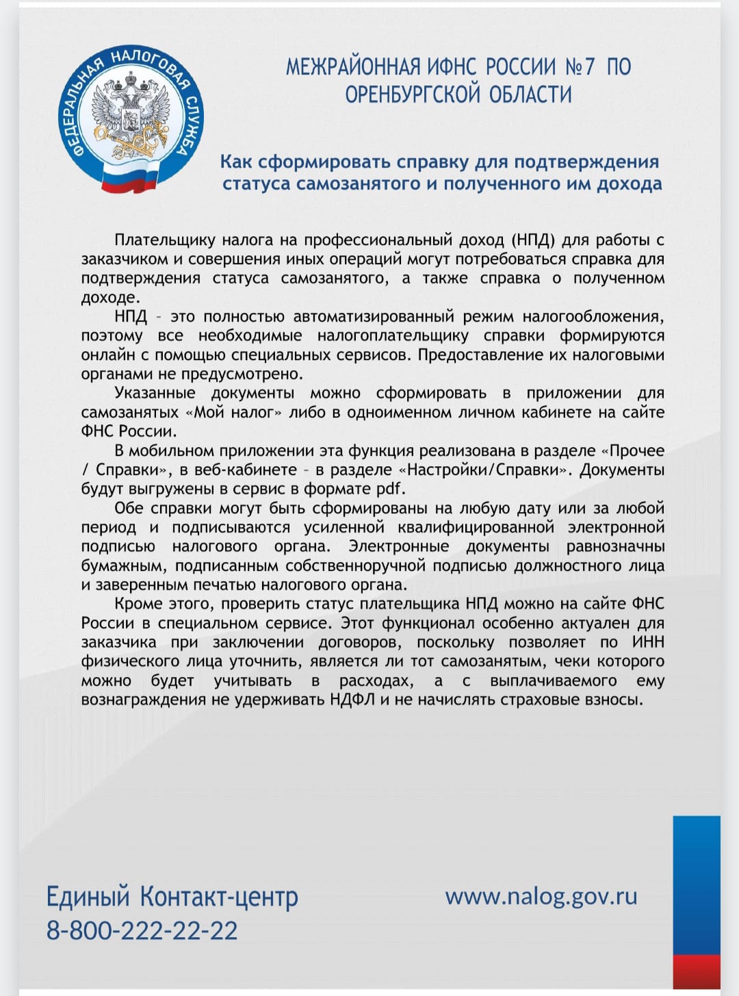 Получить дополнительную информацию можно по телефону Единого контакт-центра ФНС России 8-800-222-22-22