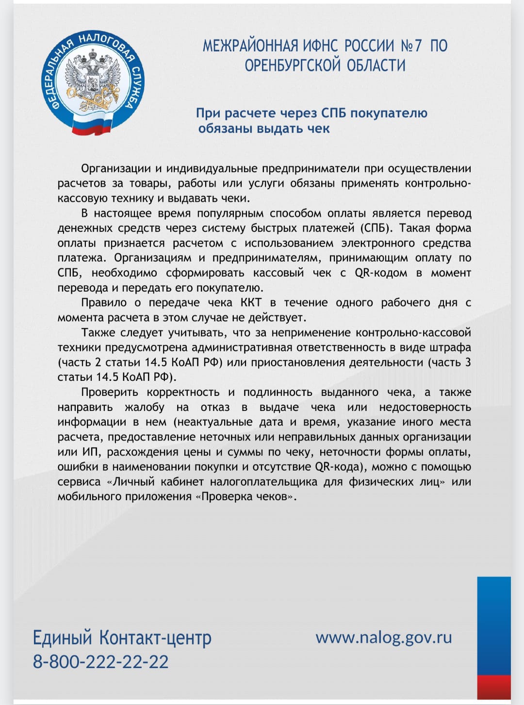 Получение чека – это вклад в благополучие общества и района!